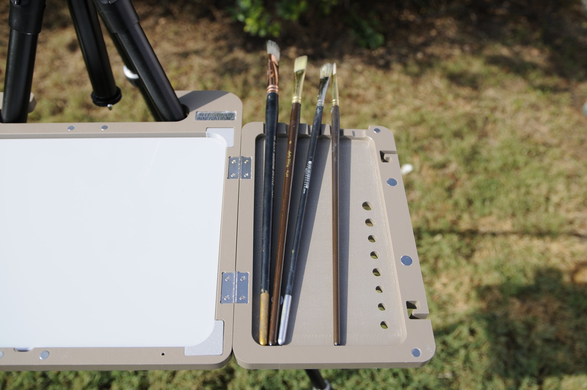 The Feather Lite Palette is a lightweight pochade box designed specifically for plein air artists who demand portability without compromising functionality. Crafted for ease of transport, it offers an organized workspace to mix and access colors quickly while painting outdoors. Its compact design ensures convenience on the move, making it an essential companion for artists seeking efficiency and precision in any outdoor setting.