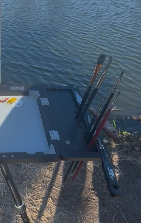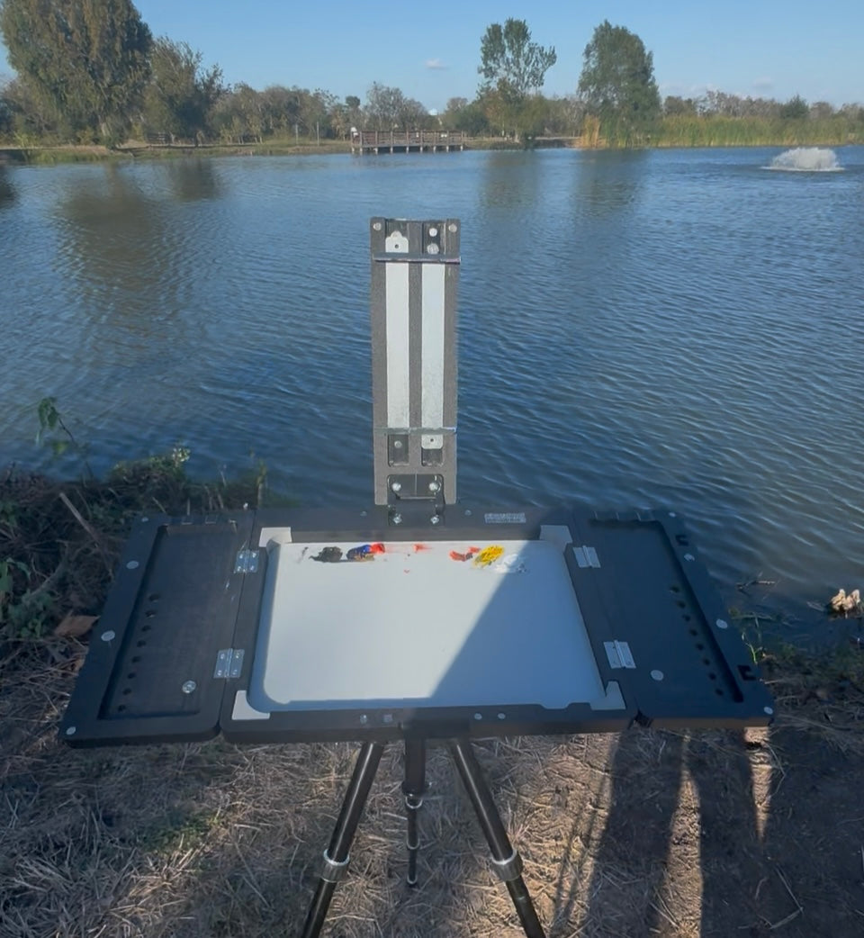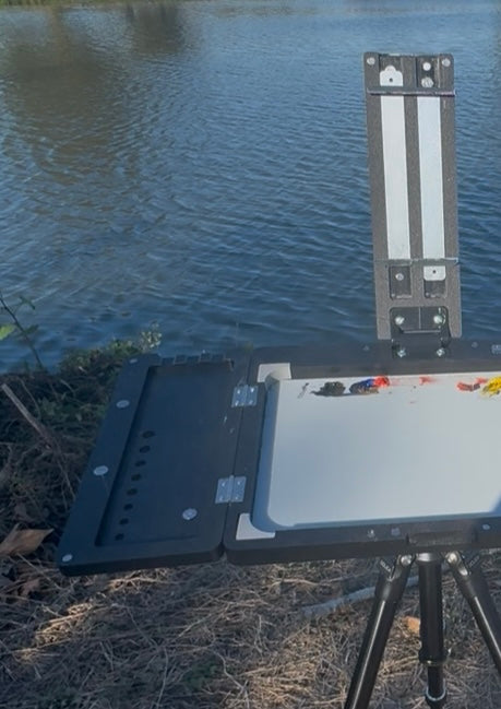 Experience the freedom of painting anywhere with the NO Boundaries Easel. This innovative lightweight trifold canvas holder is designed specifically for plein air artists who demand portability without compromising stability.
